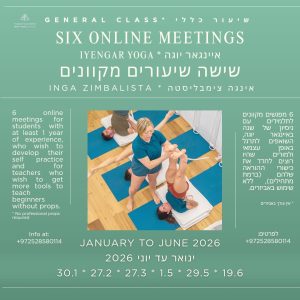 שיעור ייחודי לתלמידים המתרגלים איינגאר יוגה כשנה ולמורים שהיו רוצים להעמיק את הבנתם וביטחונם בהוראת רמת מתחילים, ללא ציוד.